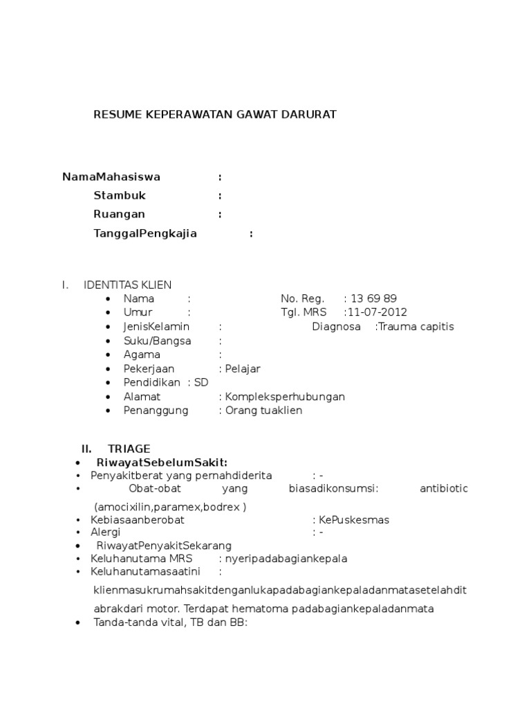 Format Resume Keperawatan Gawat Darurat Pdf